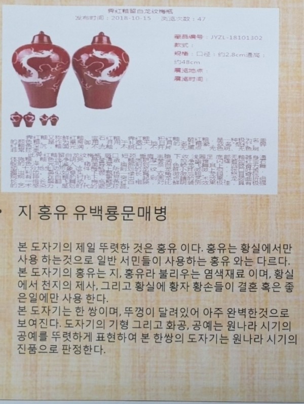 도자기 원나라 홍유 매병(국제 경매 출품작) GN 갤러리의 "원나라 홍유 매병" 에 관심 있으신분 은 관리자 에게 별도로 문의 주세요!임대 도 가능 하오니 편하게 문의..